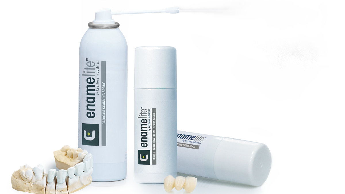 Typically, ceramic glazes have to be fired multiple times for optimum glazing results. With Enamelite, Keystone says outstanding glazing results can be accomplished in just one firing, resulting in significant time savings. In addition to reduced firing time, Enamelite applies very quickly to the restoration in a simple aerosol spray. “[The] application of the clear glaze was faster than the brush-on glaze that I typically use, which